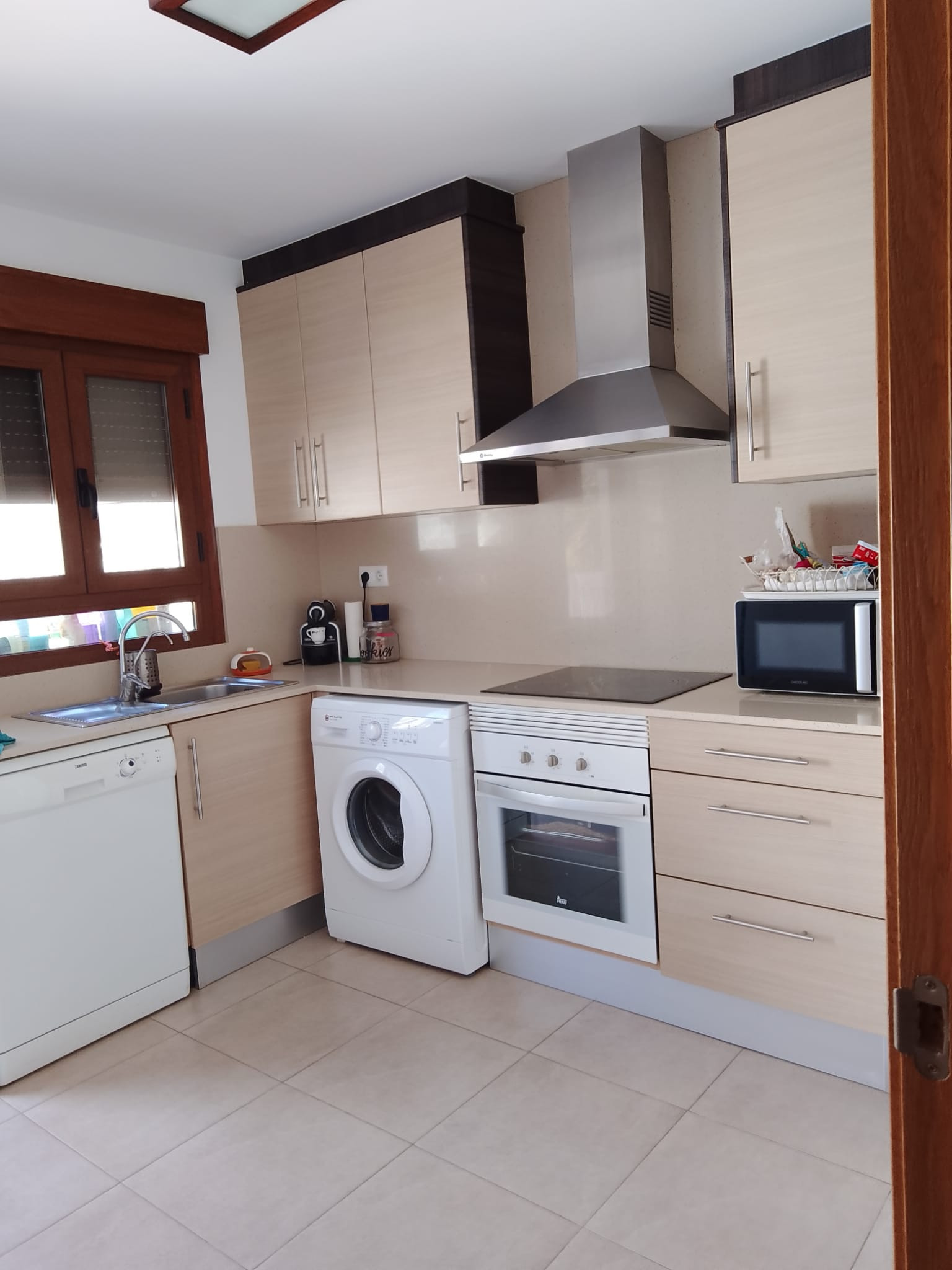 La cocina independiente, de vitrocerámica, está equipada con nevera, microondas, horno, lavavajillas, vajilla/cubertería, cafetera y tostadora.